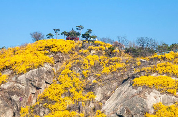 Forsythia—called Gaenari in Korea—is a flower that symbolizes spring in Korea. So, the representative color of spring in Korea is yellow. This beautiful yellow flower can be easily seen on Eungbongsan Mountain in Seoul. So Eungbongsan Mountain turns yellow in spring. Feel the scent of flowers and take beautiful photos while hiking in the mountains in downtown Seoul.