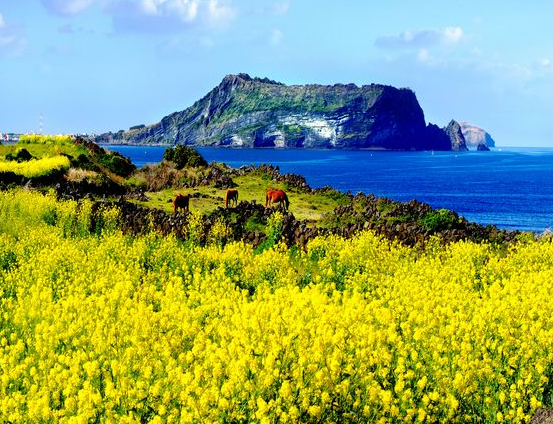 Rapeseeds—called Yuchaekkot in Korea—boast a beautiful yellow color. It is also the raw material for canola oil, which we use every day. It is a common flower in Korea, but the most famous spot is Seongsan Ilchulbong in Jeju, a very famous tourist destination. There is a large Rapeseed field here, making travelers feel good. Be sure to visit this place when you travel to Jeju!