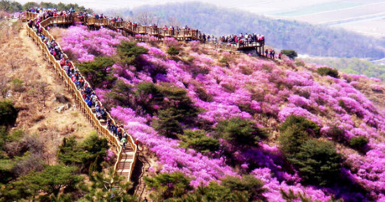 Azalea—called Jindallae in Korea—is the most common flower in Korea. This purple-colored flower is one of the flowers that Korean people love very much. Goryeosan in Ganghwa Island is home to a huge azalea colony. Goryeosan turns purple in the spring, and lots of people come to see the blooms while strolling around the amazing landscape. During the festival, you can enjoy Hwajeon, a dish made with flowers.