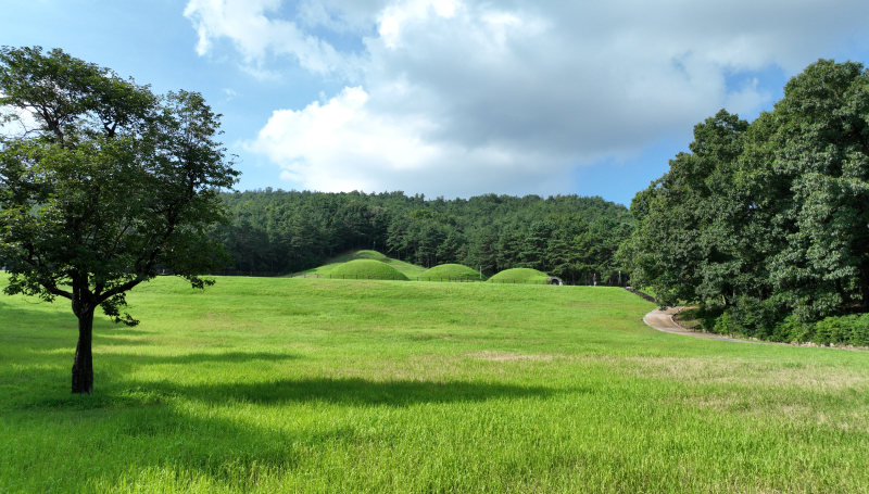 The Buyeo Royal Tombs has the aligned royal tombs of Baekje, and their significance has been recognized, making them part of the UNESCO World Heritage Site known as the Baekje Historic Areas. There're a total of seven royal tombs in this location, with the tombs of the royal family and nobles situated around them. Although the site is not large in scale and does not feature many spectacular sights, it serves as a meaningful tourist attraction in Buyeo, which is rich in relics from the ancient kingdom of Baekje, dating back a thousand years. Visitors can also enter the tomb replicas to observe what the interiors of the tombs actually looked like. In addition to the tombs, there're temple sites that remain only as traces, and by aligning these sites with a large film frame, one can faintly visualize the ancient temple. This location is also cherished for its well-maintained landscaping and leisurely exploration paths.