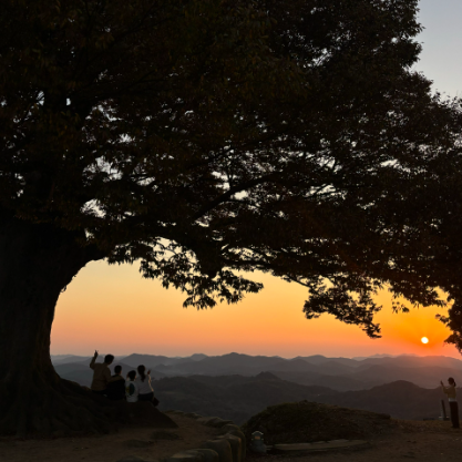 Garimseong is a mountain fortress of Baekje, built 1,500 years ago. It has become a popular tourist attraction, featuring the Love Tree at its summit, which serves as a favored photo spot. The Garimseong Zelkova tree, located at the top of Garimseong, is affectionately known as the Love Tree due to its branches resembling a heart. This tree is estimated to be over 400 years old, and the view from the fortress is breathtaking. When photographing this tree, you may wonder why it appears heart-shaped. This effect is achieved by taking one of the two pictures in the opposite direction, creating a heart shape. This technique allows you to capture unique images with your partner or friend. If you visit during sunset, you can take even more stunning photographs, as the sky is beautifully illuminated by the setting sun. Therefore, planning your visit around sunset would be an excellent idea!