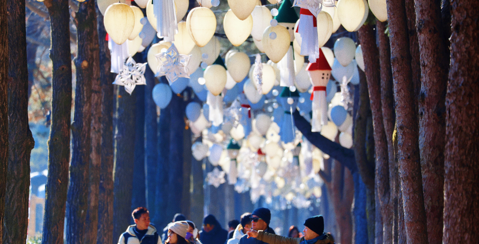 Visit the Winter Wonder Nami Island Festival and experience the winter season of Nami Island, beautiful all year round! You can stroll around the frozen landscapes of Nami Island or capture special four-cut photos. Nami Island in winter is stunning, but it's also nice to take a break indoors to escape the cold weather. The cafes scattered across the island offer seasonal delights such as vin chaud, winter afternoon tea sets, and festive Christmas muffins, available only during this time of year. Be sure to visit any of these charming spots! The snow-covered scenery and winter-themed desserts will warm both your body and spirit. Participate in various events that allow you to fully embrace the joys of winter and create lasting memories at the photo zones located throughout the island!