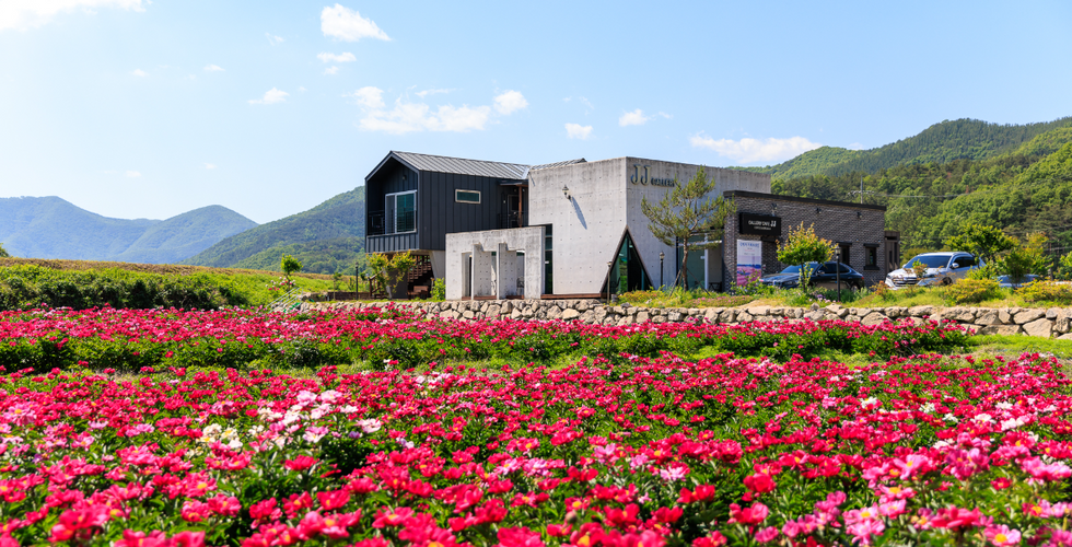 JJ Gallery is run by a Western-style painter, offering both an art exhibition and café experience indoors, while outside you can enjoy a beautiful flower garden. In May, the expansive flower garden is filled with peonies, painting the outdoor space in shades of pink. The gallery’s curator and café owner, Kim Jeongja, designed this space to allow people to escape the city, enjoy art up close, and savor a cup of coffee. True to her vision, the paintings displayed on the walls and the view of the peony garden through the windows bring a sense of tranquility, providing great sights while sipping tea or coffee. Peonies are loved for their large, beautiful blooms, vibrant colors, and rich fragrance. Known for their medicinal properties, their roots have been used as herbal medicine for centuries. This charming place, offering a peaceful atmosphere, enhances the beauty of Gyeongju, a city full of history and tradition.
