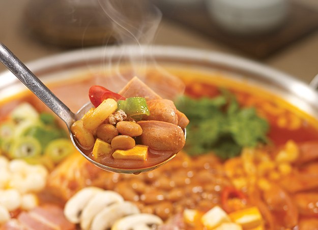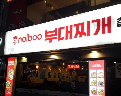 Nolboo Budaejjigae is known for its specialty dish, Budaejjigae, a soup that incorporates seasonings like kimchi, assorted hams, and sausages. The restaurant is easily identifiable by its logo featuring the character 'Nolbu' from the ancient Korean novel 'Heungbu and Nolbu'. This dish is best enjoyed with rice submerged in the soup and various toppings. It is particularly recommended after a night of heavy drinking. Ramen noodles are a crucial component of Budaejjigae, so be sure to add the provided ramen and cook it together!