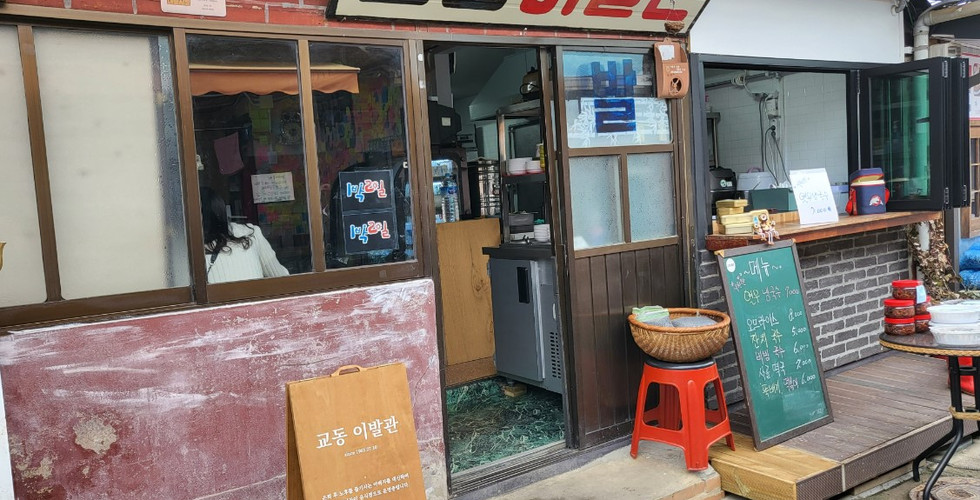 Daeryong Market was established during the Korean War to recreate the ambiance of a hometown market for residents unable to return to their original communities. Over time, as the population dwindled, the market's size also diminished. However, tourists captivated by its movie set-like charm began to flock to the area. Daeryong Market, which seems to encapsulate the essence of 1960s Korea, is brimming with a variety of foods and sights. Notably, Songhwa Chips, renowned for selling beverages in sesame oil bottles commonly used in Korea and potato chips in cans, has gained significant popularity. Additionally, the market's nostalgic atmosphere allows visitors to capture unique photographs at Gyodong Studio, where they can former Korean school uniforms for a memorable snapshot!